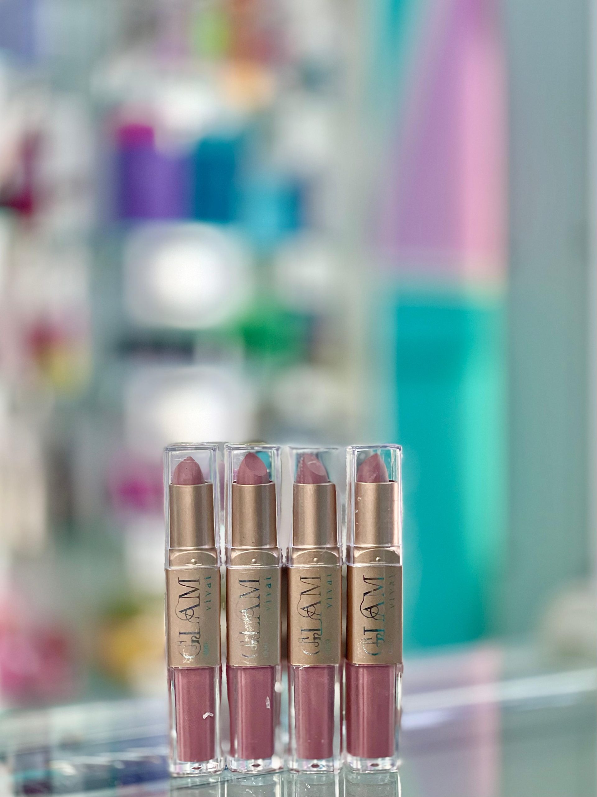 Esse batom 2 em 1 da Glam Vivai combina praticidade e beleza em um só produto. De um lado, um batom em bala cremoso que hidrata e colore os lábios com acabamento suave. Do outro, um batom líquido com alta pigmentação para um acabamento mais intenso e duradouro. Ideal para transformar seu look do dia para a noite com facilidade. Peso aproximado: 3g (batom em bala) + 5ml (batom líquido).